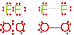 En esta, como ambos son no metales y no pueden perder electrones tienen que compartir hasta llegar a ocho electrtones cada simbolo