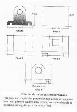 El croquis debe ser proporcionado para dar una idea general del volumen de la pieza
