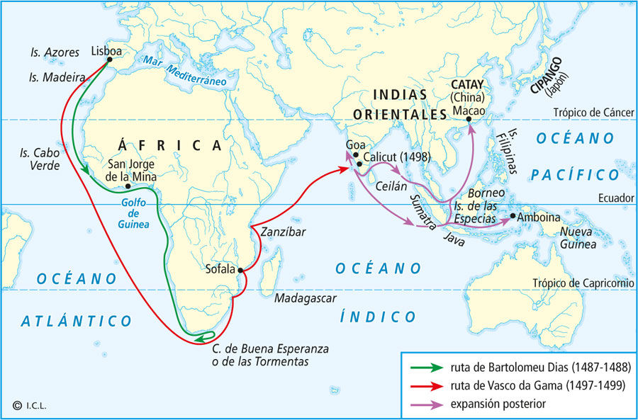 Más tarde, Bartolomeu Dias llegó hasta el Cabo de Buena Esperanza o de las Tormentas (1488).