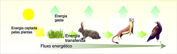 A energia é assimilada pelas plantas e