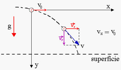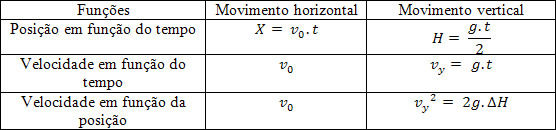 Na direção horizontal o corpo realiza um movimento uniforme com velocidade igual a .