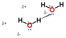 1. El resultado es que la molécula de agua aunque tiene una carga total neutra. Por ello se dan interacciones dipolo-dipolo entre las propias moléculas de agua, formándose enlaces por puentes de hidrógeno, la carga parcial negativa del oxígeno de una molécula ejerce atracción electrostática sobre las cargas parciales positivas de los átomos de hidrógeno de otras moléculas adyacentes.