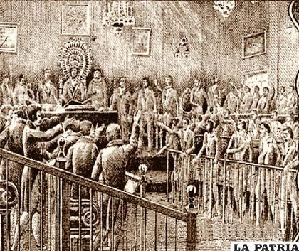 Los representantes de las cinco provincias Altoperuanas, por voto unanime declararon el nacimiento de la nueva república.