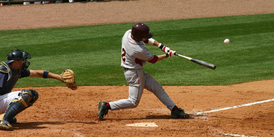 We play baseball in the stadium