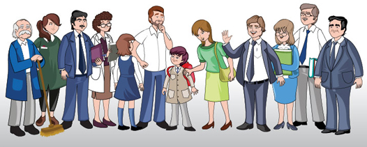 Conjunto de personas unidas en temas relativos a la escuela: alumnos, profesores, padres, personal auxiliar, administrativos y servicios.