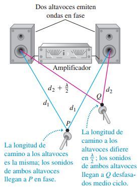 constructiva en el punto P, e interferencia destructiva en el punto Q.