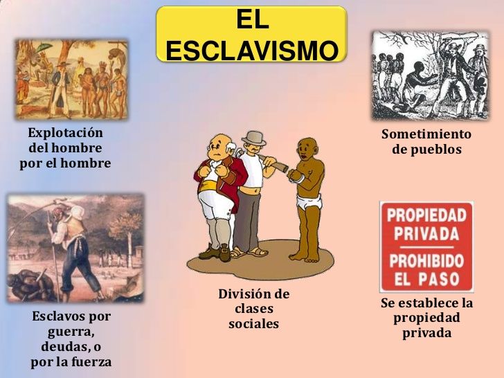 En el régimen esclavista las relaciones de producción se basaban en la propiedad sobre los dueños de los esclavos considerados como “instrumentos” sin derecho alguno de decisión y sujetos a explotación cruel