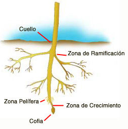 la punta de la raíz. 2. Pelos