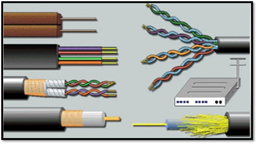 Algunos medios guiados incluyen a los cables metálicos (cobre, aluminio, etc.) y otros utilizan fibra óptica. El cable se instala normalmente en el interior de los edificios o bien en conductos subterráneos. Los cables metálicos pueden presentar una estructura coaxial o de Par trenzado, y el cobre es el material preferido como núcleo de los elementos de transmisión de las redes.