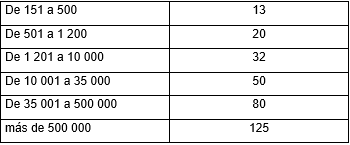 se indican en la Tabla 1, la cual no es aplicable a los