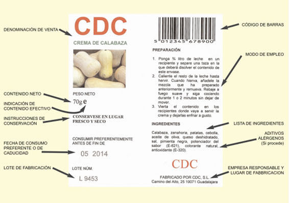 etiqueta del envase.