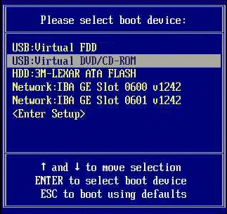 5. Seleccione la unidad de DVD/CD-ROM o la imagen del CD desde el menú del dispositivo de inicio