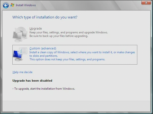 6. Siga las indicaciones del asistente hasta que aparezca la página sobre el tipo de instalación (véase