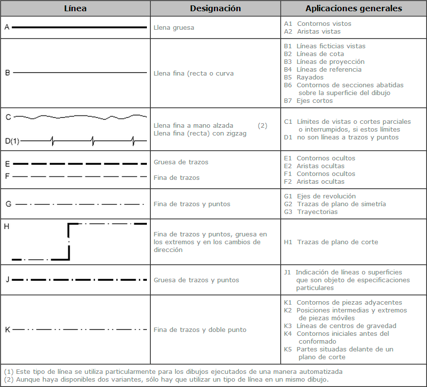En los dibujos técnicos se utilizan diferentes tipos de líneas, sus tipos y