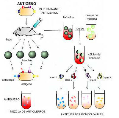 Se utilizan anficuerpos monoclonales Específicos frente a