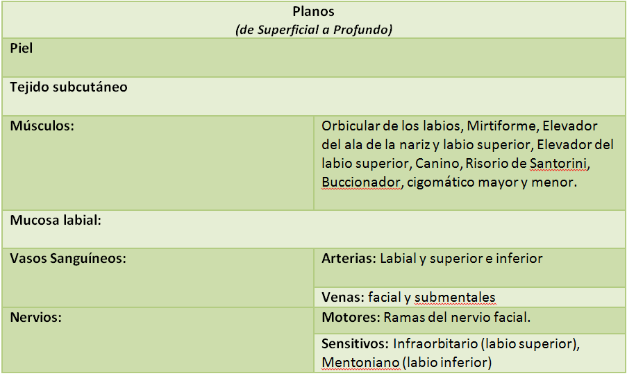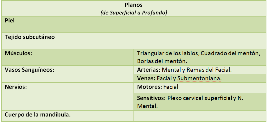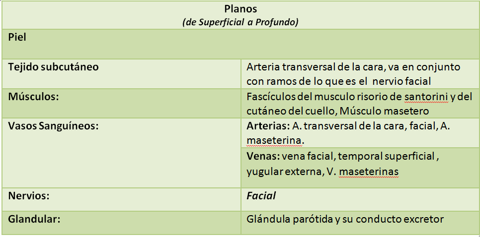 En este mapa, se clasifican las regiones de la cara, sus limites y su componentes