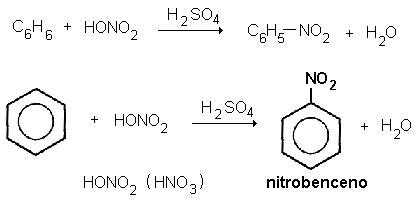 El benceno al reaccionar con el ácido nítrico forma el nitrobenceno