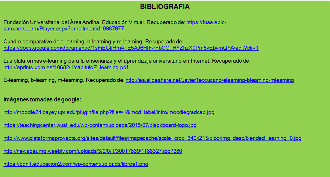 b-learning y m-learning con su respectiva clasificación. Estas plataformas