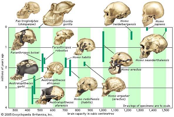 Capacidad craneal entre 380 y 450 cm3. Esto significa también un cerebro del tamaño del de un chimpancé y cercano a la tercera parte del humano actual promedio