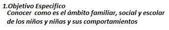 1. Objetivo Especifico: Conocer como es el ámbito familiar, social y escolar de los niños y niñas y sus comportamientos