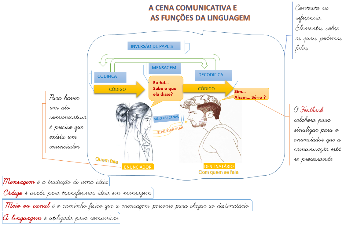 Os conceitos de funções de linguagem e como estas se apresentam são demonstrados neste mapa mental.