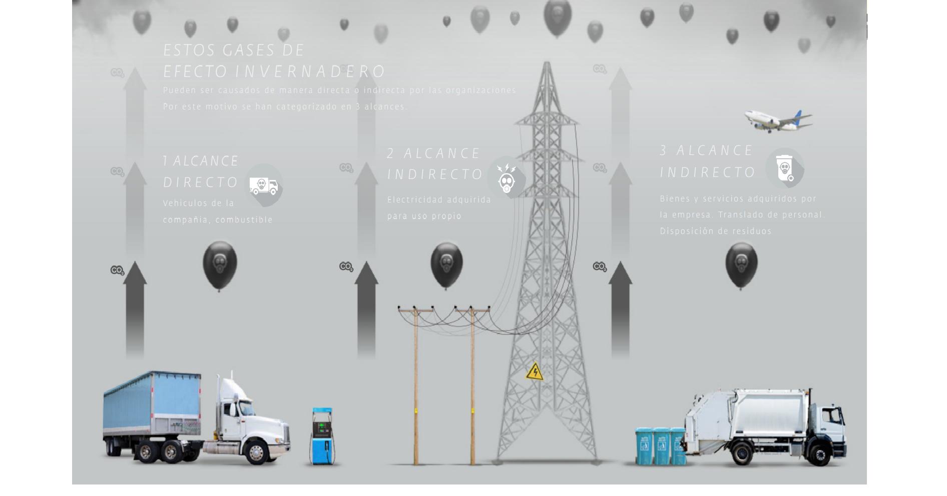 Gases de efecto invernadero emitidos de manera DIRECTA O INDIRECTA por un individuo, organización, producto o servicio (CO2, N2O,PFC, CH4, HFC, SF)
