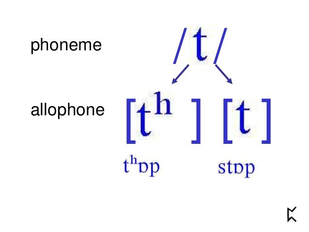 phones-phonetic symbols in brackets,, allophones-a single phoneme