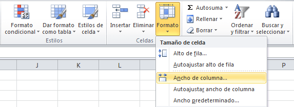 ancho estandar de columna: nos permite modificar la anchura para todas las columnas de la hoja que tienen asignada dicha anchura