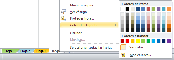 cambiar el color alas etiquetas:asignar un color alas etiquetas de las hojas de la hoja de calculo