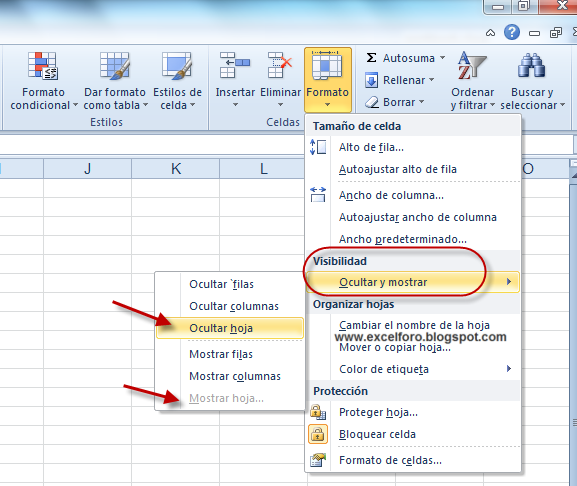 ocultar hojas:recuerde que debe hacer clic sobre las pestañas inferiores mientras pulsa la tecla ctrl
