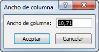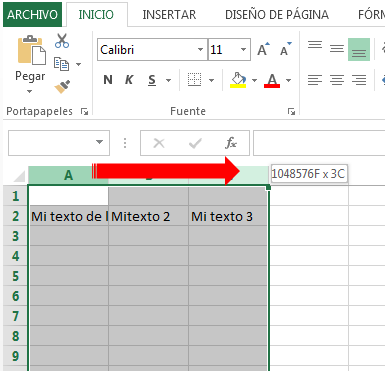 la anchura por defecto de una colmna es de 8,43 Seleccionar las columnas a las que quiere modificar la anchura
