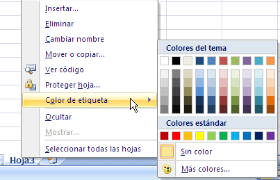 Nos permite cambiar o asignar un color a las etiquetas de las hojas de calculo