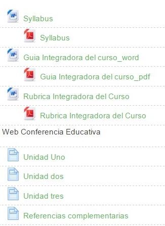 Este mapa permitirá dar un vistazo a cada uno de los entornos y contenidos del curso