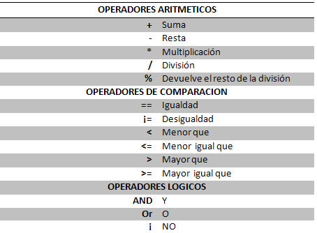 Los operadores son elementos que disparan ciertos cálculos cuando son aplicados a variables o a otros objetos en una expresión.