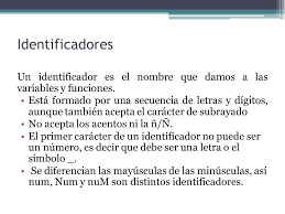 Un identificador es un conjunto de caracteres alfanuméricos de cualquier longitud que sirve para identificar las entidades del programa