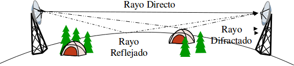 A frecuencias superiores, para antenas elevadas, el suelo produce reflexiones o difracciones cuando obstaculiza a la onda.