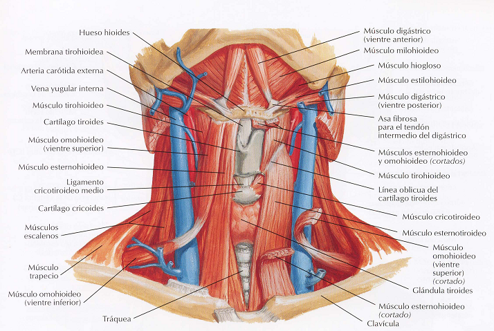 Se extiende inferiormente desde el hioides hasta el interior del tórax