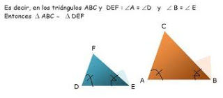 dos triangulos son semejantes si tienen dos angulos respectivamente iguales