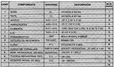 ensamblaje de partes individuales, que figuran en un dibujo técnico.