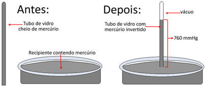 Torricelli concluiu que a pressão exercida pela coluna de 760 mm de mercúrio foi equilibrada pela pressão atmosférica