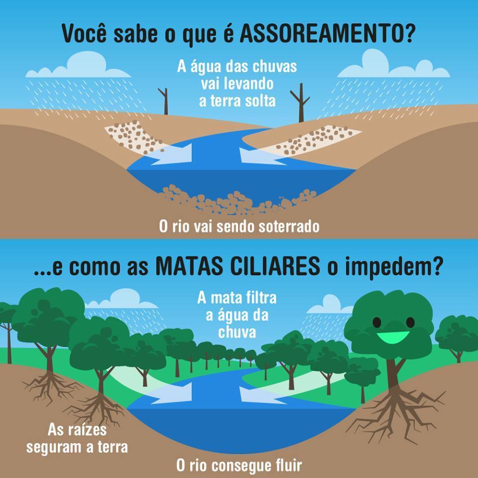 solo à erosão, uma vez que as árvores servem de anteparo para as chuvas, contribuem para diminuir a velocidade de escoamento superficial e impedir o impacto direto das gotas no chão e suas raízes ajudam a reter o solo, evitando que este se desagregue)