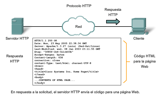 Responde con los recursos, el navegador interpreta los datos recibidos y los muestra