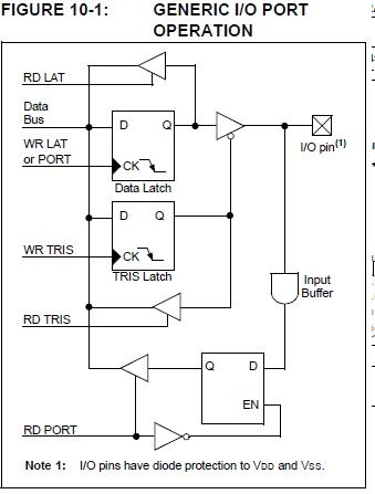 • registro TRIS (dirección de datos de registro) • registro PORT (lee los niveles en los pines de la
