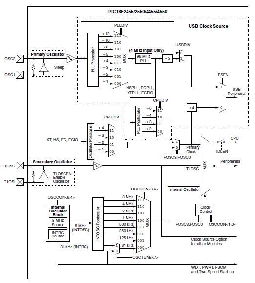 El PIC 18F4550 cuenta con 12 modos diferentes de