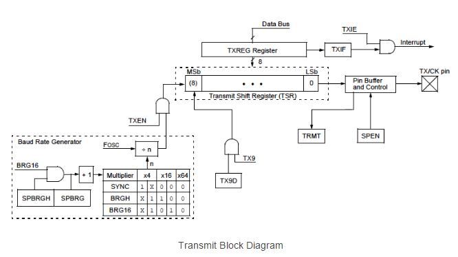 • Transmit Status and Control (TXSTA) - Transmisión de Datos • Receive Status and Control (RCSTA) -