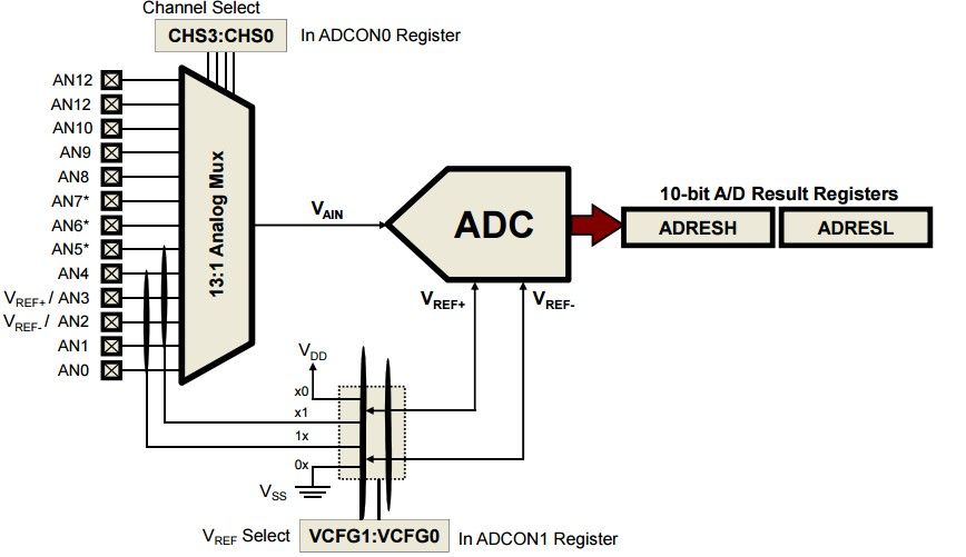 Vref+ y Vref (bits VCFG0 y VCFG1 del