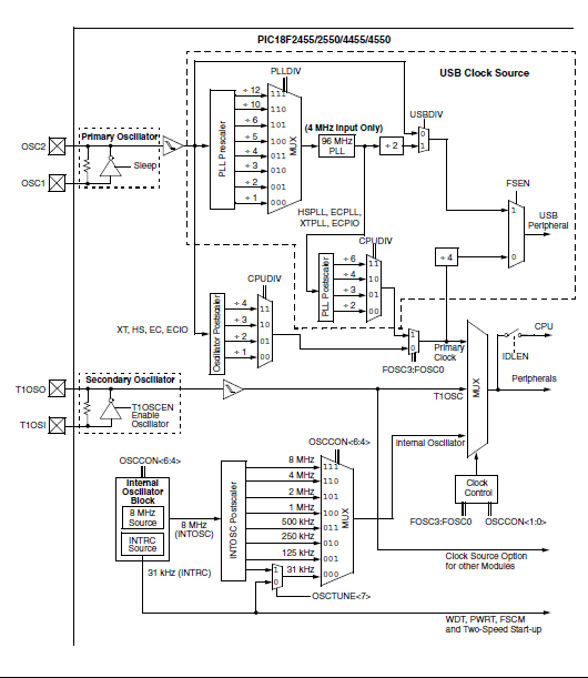 la salida del PLL ed 96MHZ, por lo que se dividira entre 2 en el postescalador para obtener la frecuencia maxima de 48MHz