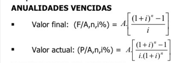 Anualidades que son utilizadas con mayor frecuencia en la actividad financiera y comercial