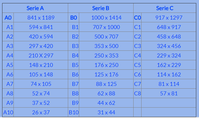 Hace referencia a las hojas de dibujo que contempla la norma de acuerdo a ISO 5457 y se mide en mm