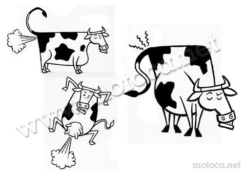 Os bovinos liberam gás metano ao soltarem gases na atmosfera e esses gases contribuem para o aumento efeito estufa. Estudo revela que gases de bovinos causam mais efeito estufa que os automóveis.